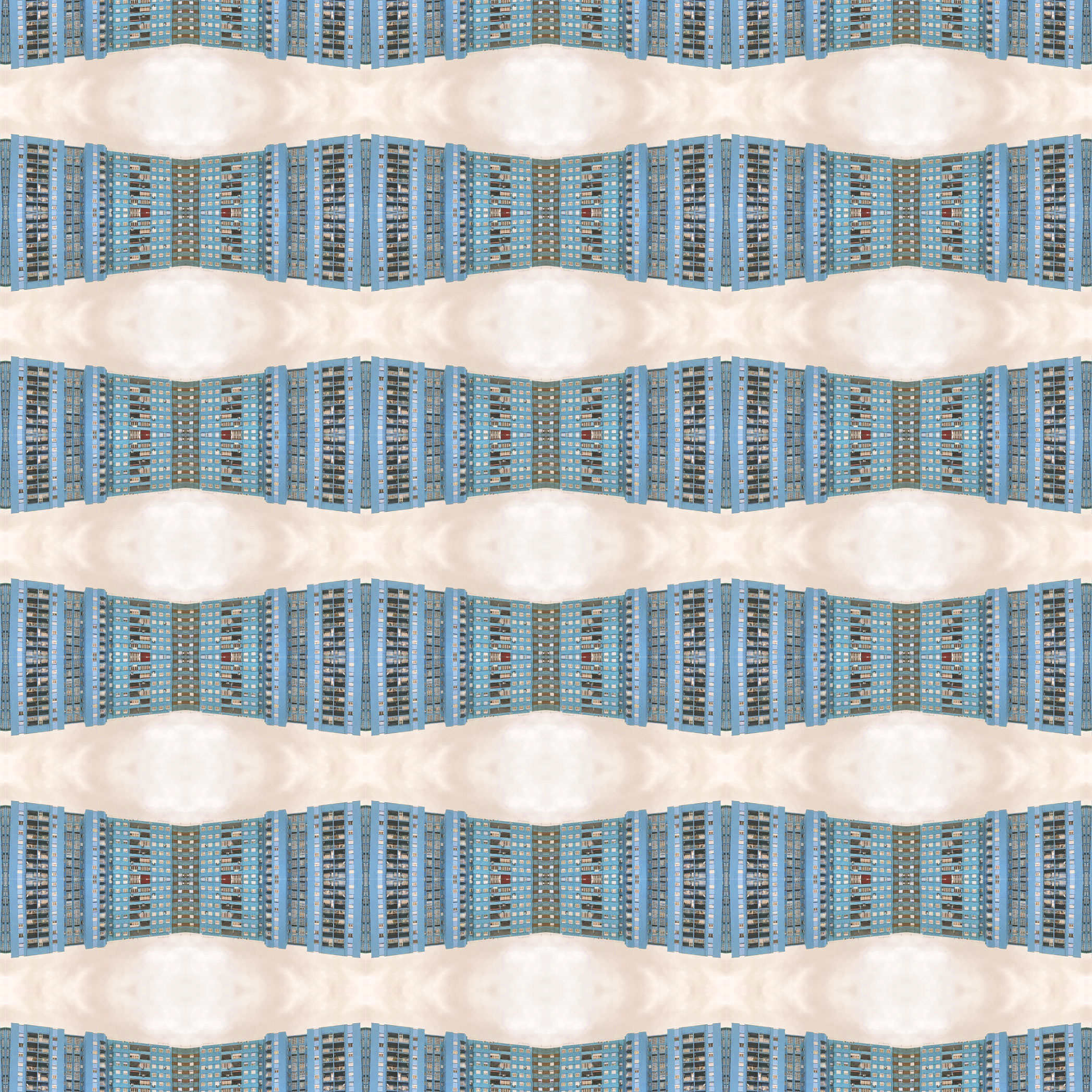 Estructuras verticales inertes que he observado con más detalle durante estos días de cuarentena, edificios como esculturas que son parte del paisaje. Por medio de la fotografía y del pattern, buscaba dar movimiento y forma, como algo que vemos cada día y es parte de la rutina, puede conformar otras cosas que cambian un poco el paisaje que nos rodea durante este encierro.